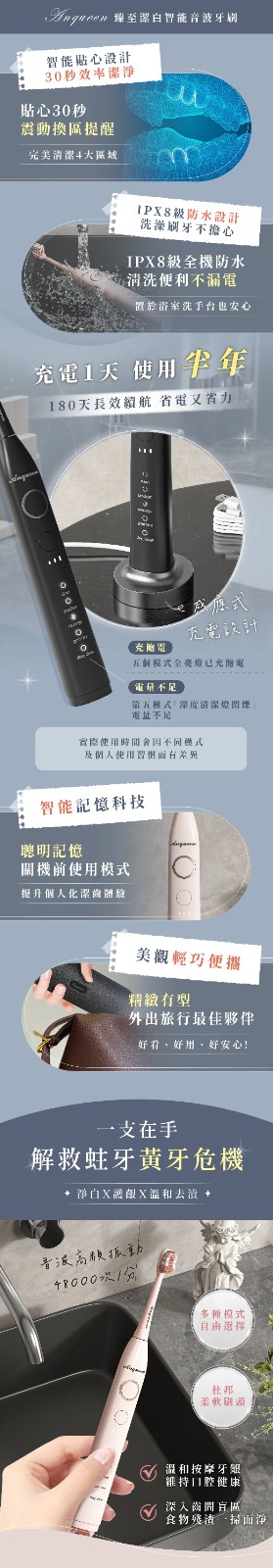 25分鐘前微笑從齒開始!Anqueen安晴臻至潔白智能音波電動牙刷AQ-B101 - 黑色款